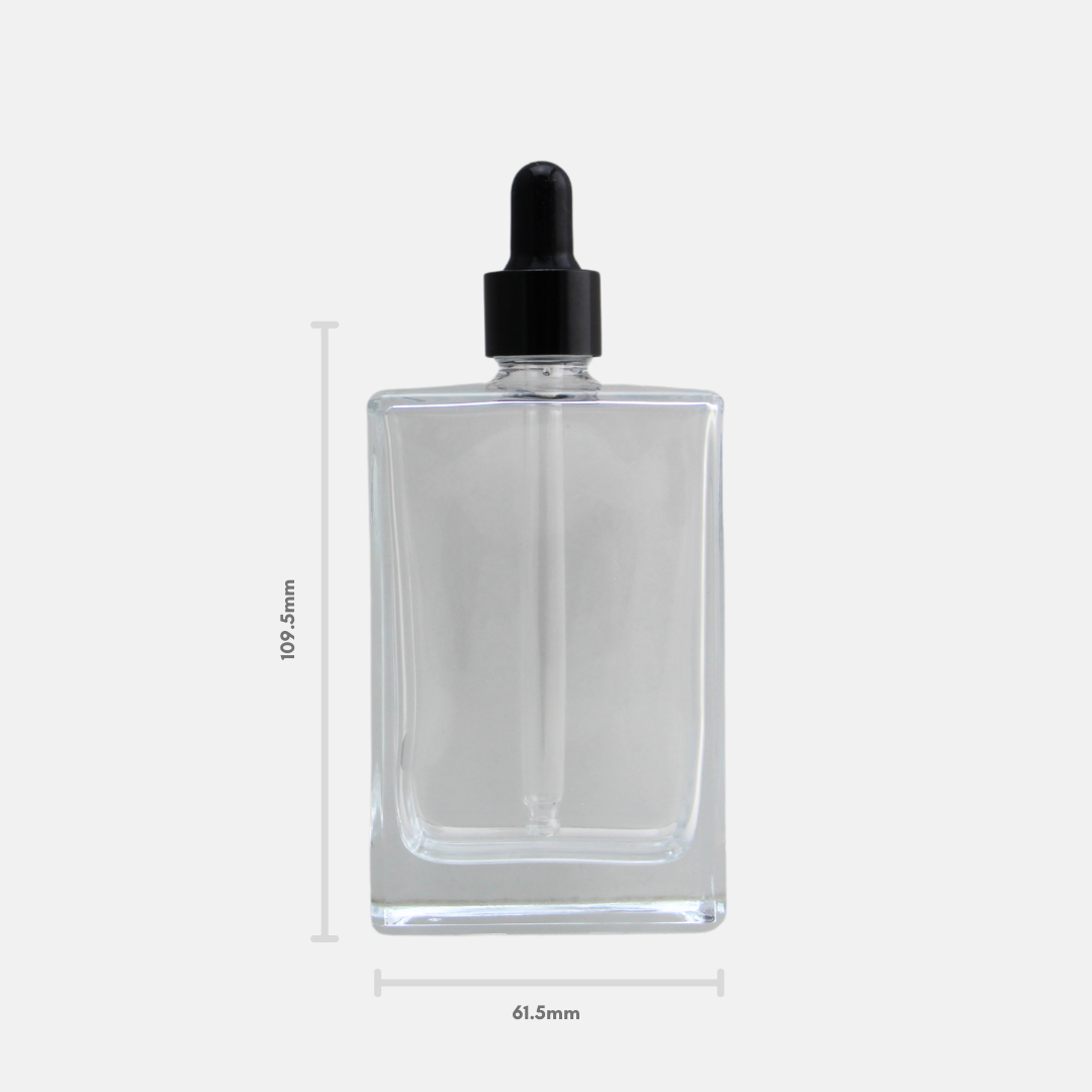 Our 100ml rectangle glass bottle is the perfect vessel for oils and serums. The bottle comes complete with a silicone rubber black dropper for a match made in heaven!